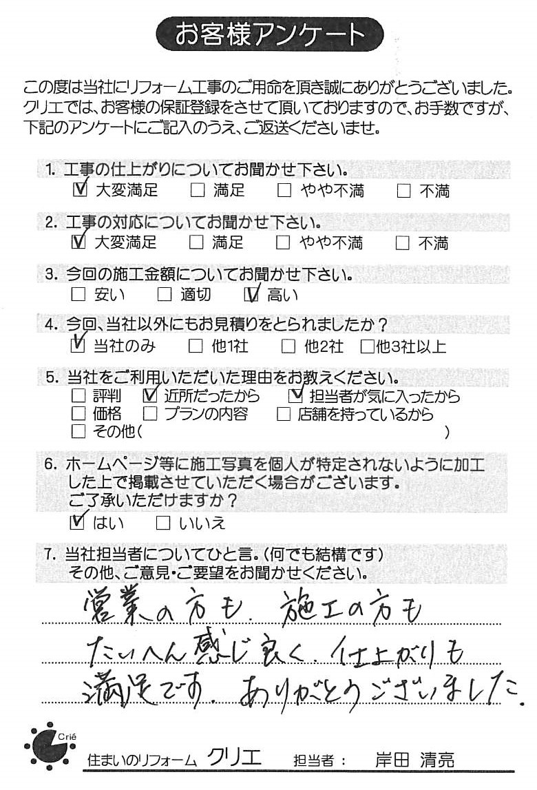 クリエでは、リフォーム工事の完了後にアンケートのご協力をお願いしております。いつもたくさんのご返信を頂き誠にありがとうございます。 クリックして拡大 クリックして拡大 クリックして拡大 クリックして拡大 クリックして拡大 クリックして拡大 クリックして拡大 クリックして拡大 クリックして拡大 クリックして拡大 クリックして拡大 クリックして拡大 1 2 3 … 14